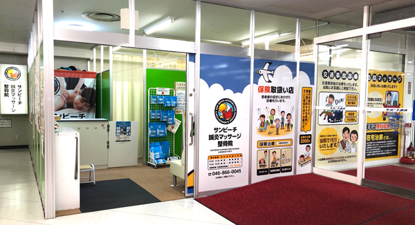 当院は、ショッピングセンター「サンビーチ追浜」2Fにあります。駅チカ&19:30まで受付のため、通いやすい治療院です!